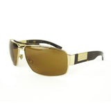 Gucci golden frame aviator sunglasses with thin tortoise detailing at top, dark tortoise arms and golden Gucci plate at each side.