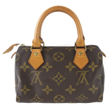 Louis Vuitton vintage Mini Monogram Speedy satchel with zip top. Double rolled leather handles. Golden brass hardware. Made in France.